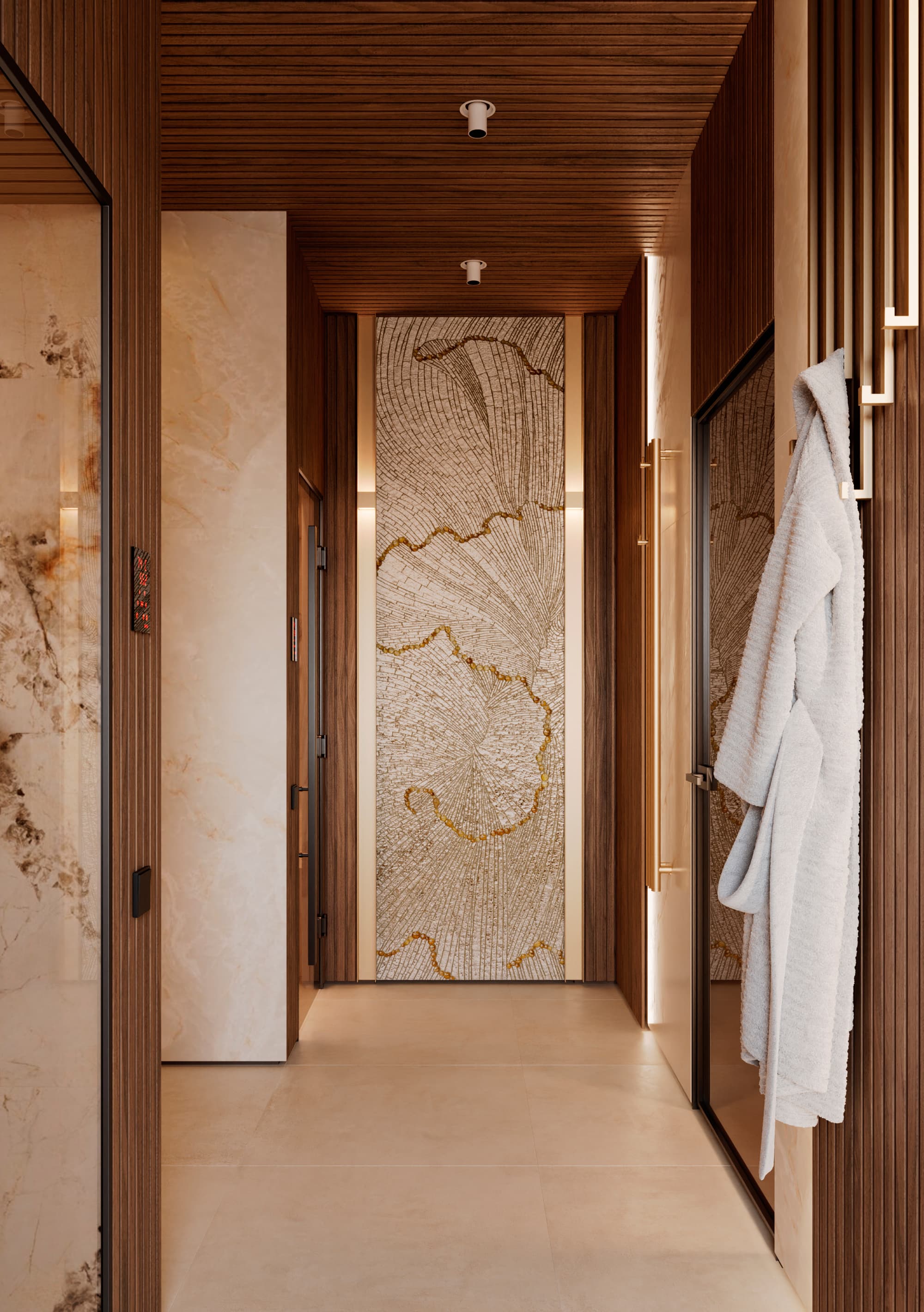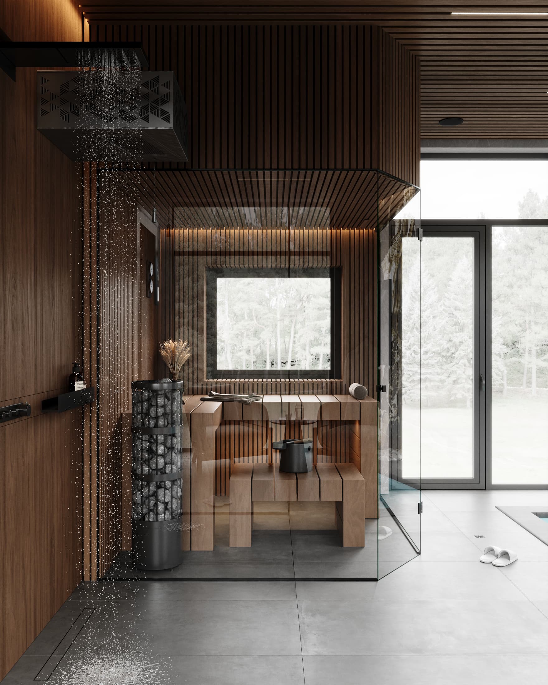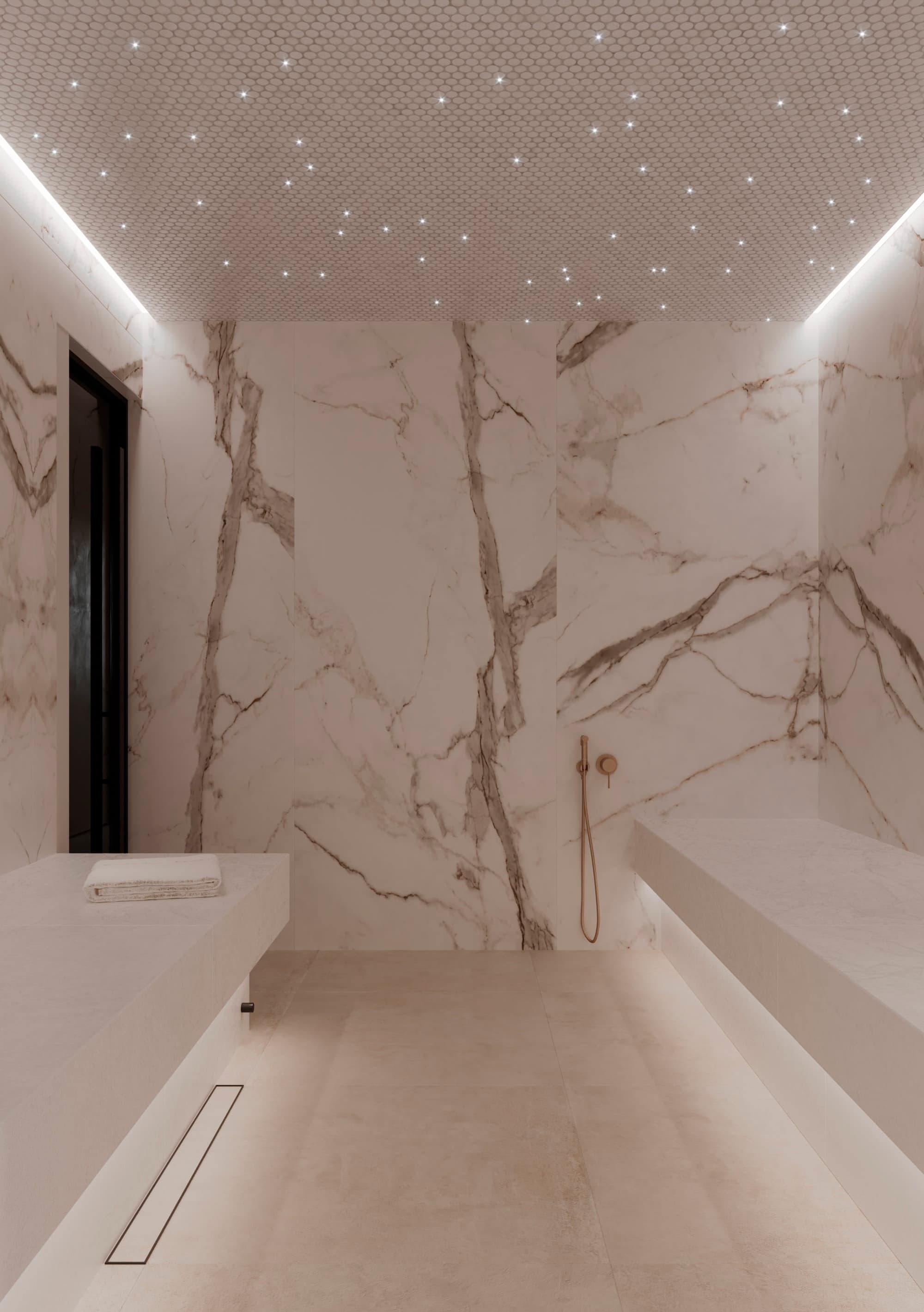 Эмерсивный душ впечатлений – это современный элемент, который сочетает различные виды душа, ароматы и освещение. Он создает уникальные ощущения и позволяет сделать водные процедуры незабываемыми. При проектировании такого душа важно учесть доступность и интеграцию с другими элементами СПА. - Снежные комнаты